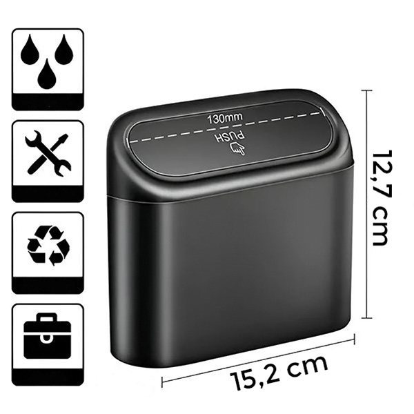 Tento kompaktní odpadkový koš udržuje vaše vozidlo čisté a uspořádané, aniž by zabíral příliš mnoho místa. Jeho konstrukce nabízí dostatečnou kapacitu pro každodenní odpad, takže je praktický a nenápadný.