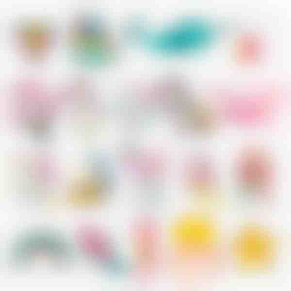 Samolepky: 21 samolepek různých tvarů a vzorů