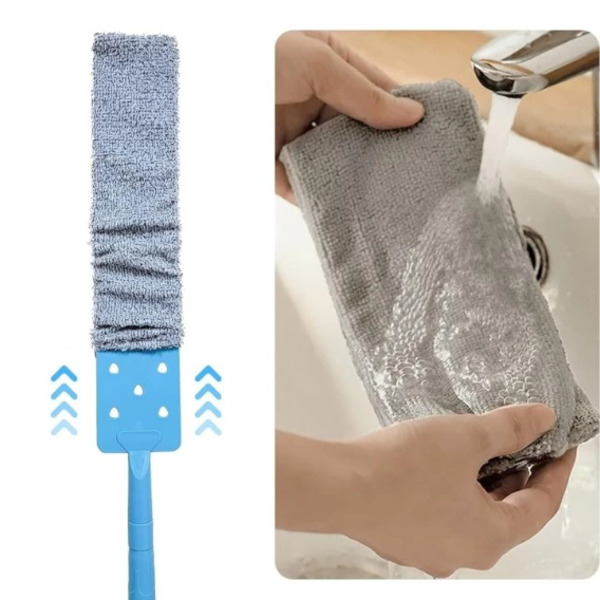S ohebnou mikrovláknovou hlavou se tento čistič přizpůsobí různým úhlům, což zajišťuje důkladné odstranění prachu z různých povrchů a rohů.