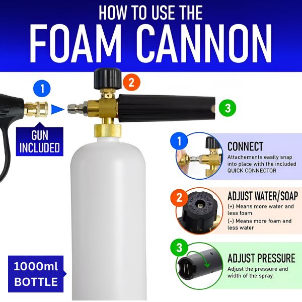 Tento dávkovač pěny je ideální pro širokou škálu úkolů – od mytí aut až po čištění podlah, oken a venkovních prostor.