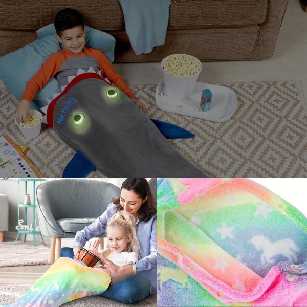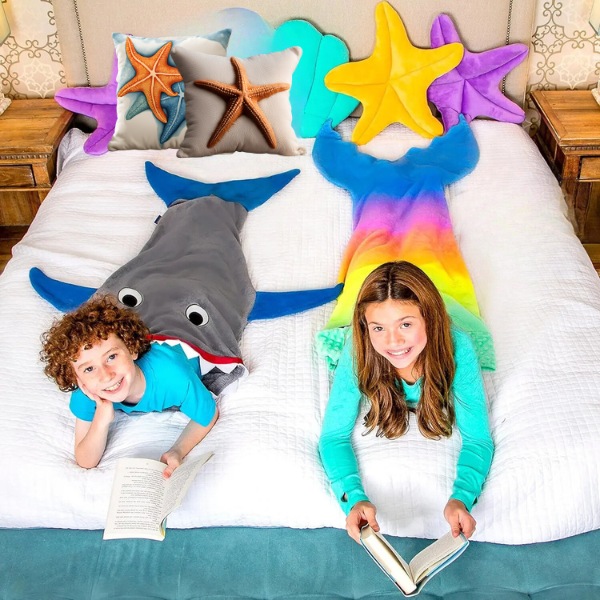 Měkký, vysoce kvalitní flanelový fleece udrží děti v teple, zatímco odpočívají po škole nebo se ukládají k spánku. Je ideální pro zachumlání se na gauči při sledování pohádek nebo pro zahřátí za chladných nocí. Vaše děti se budou chichotat radostí, až se zachumlají do žraločího ocasu nebo ocasu mořské panny.