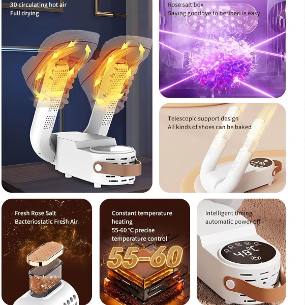 Rovnoměrně rozvádí teplo k vysušení obuvi bez přehřívání nebo deformace materiálů.