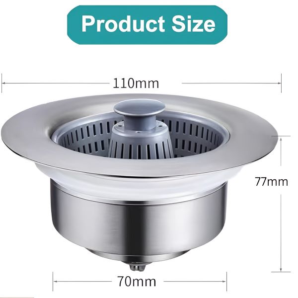 Toto dřezové odtokové sítko je vyrobeno z vysoce kvalitní nerezové oceli a ABS a je konstruováno tak, aby dlouho vydrželo, odolávalo teplu a nerezivělo, takže se snadno používá a udržuje.